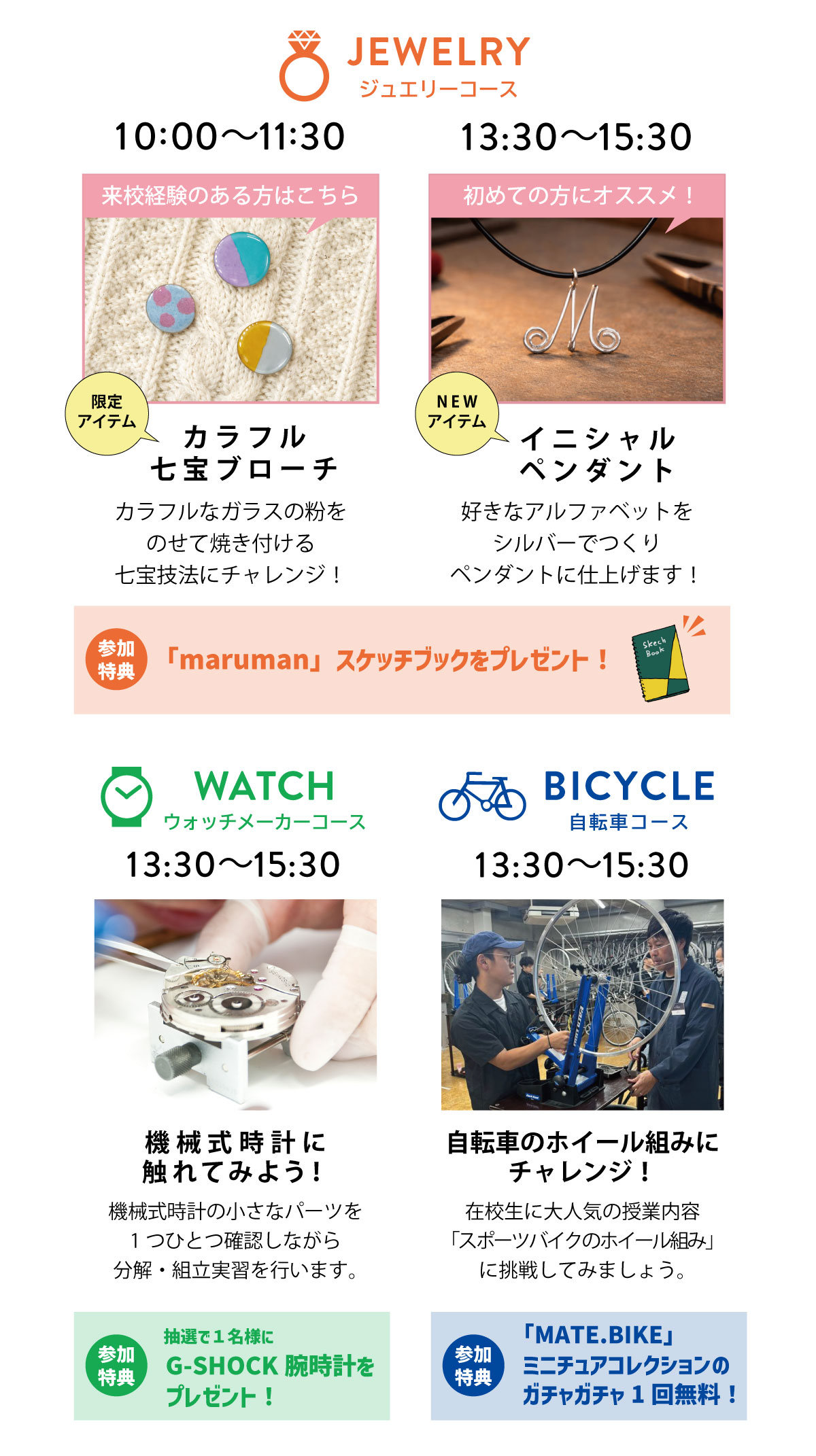 ジュエリー、ウォッチ、自転車の各分野に特化した”モノづくり”の技術修得を目指す専門学校